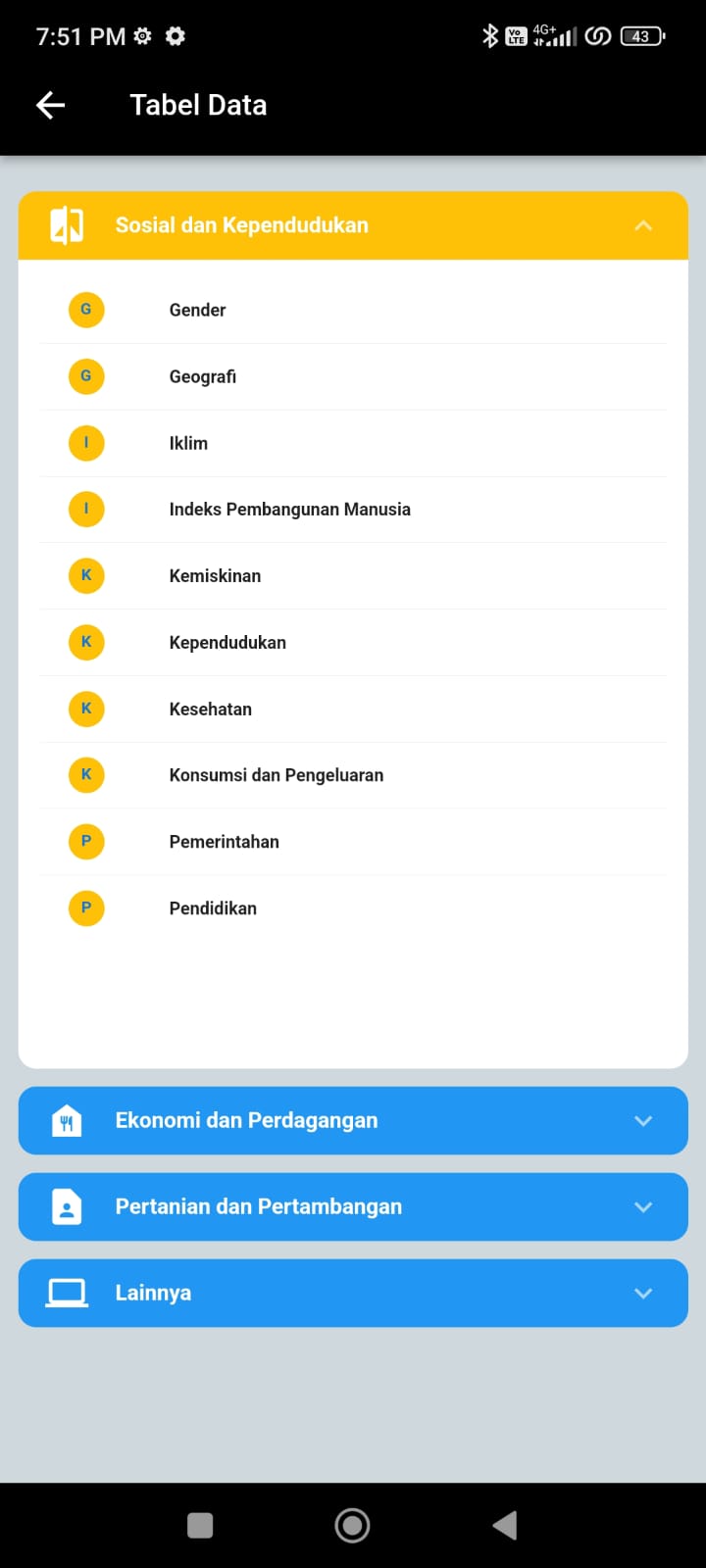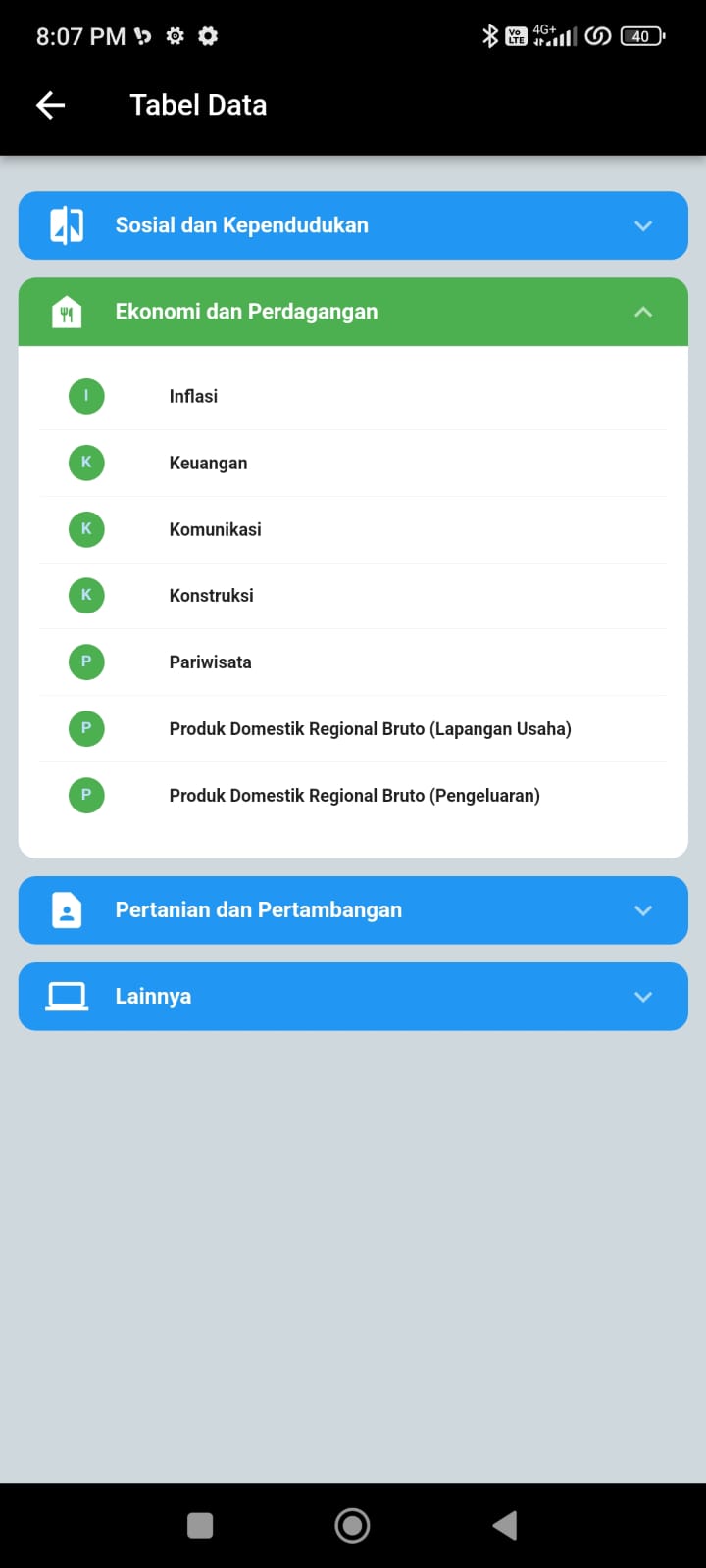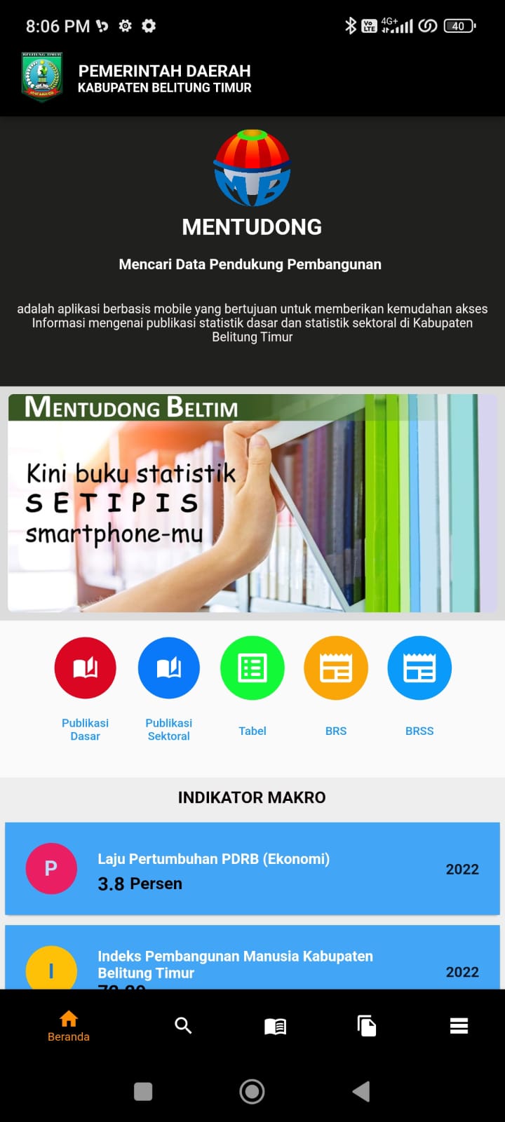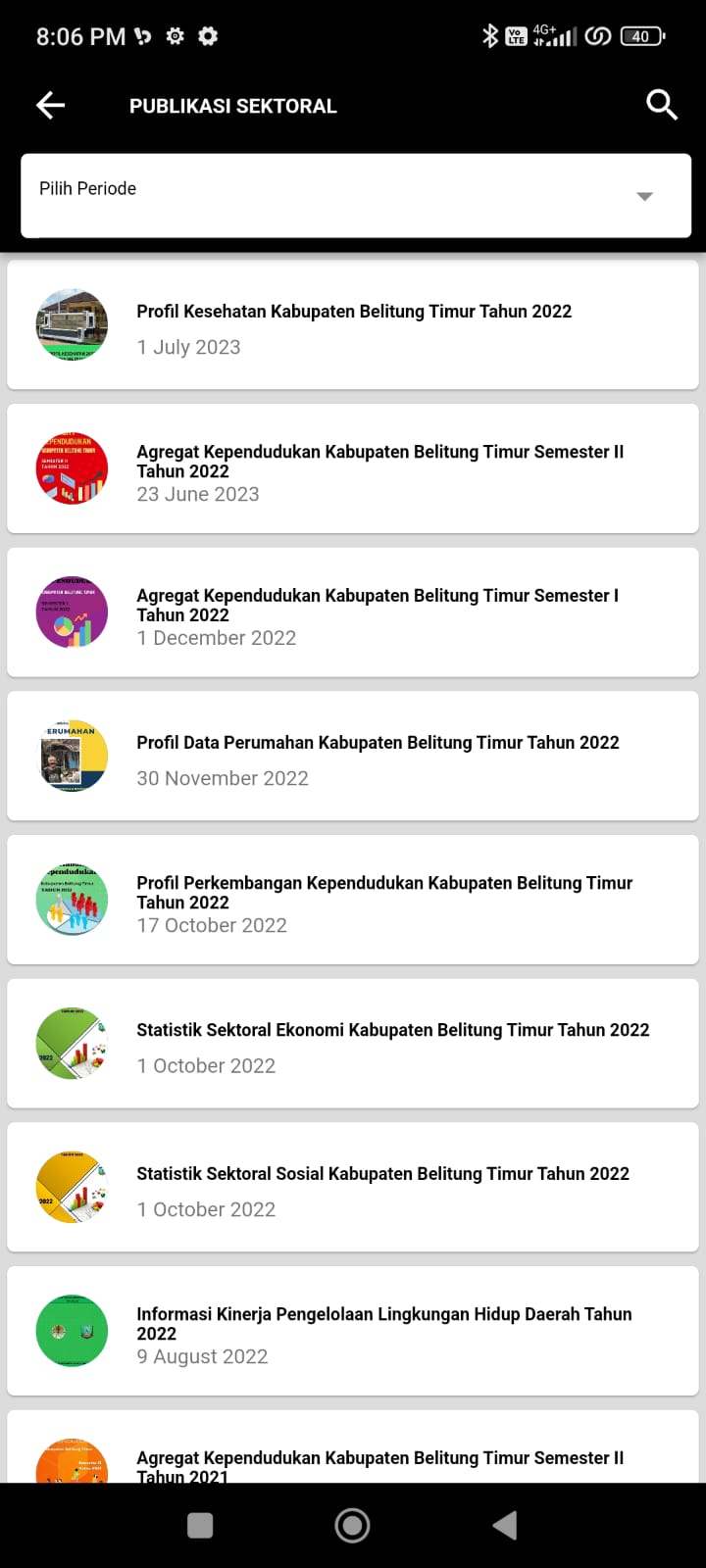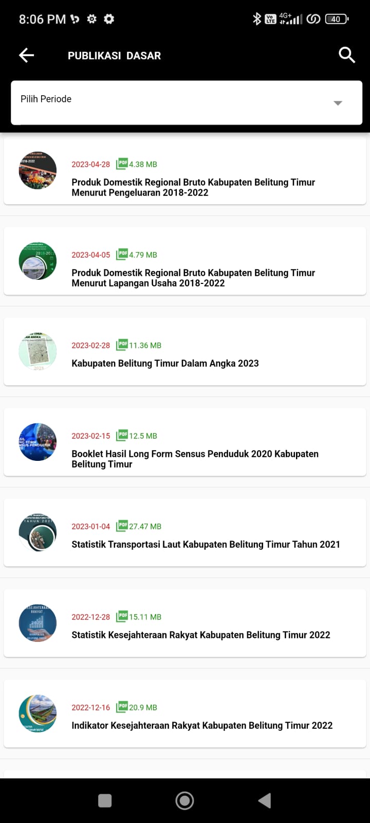 Semua produk-produk Statistik dapat diunduh dan disimpan dalam perangkat android. Publikasi Statistik Dasar dan Sektoral bisa diunduh dalam bentuk pdf.